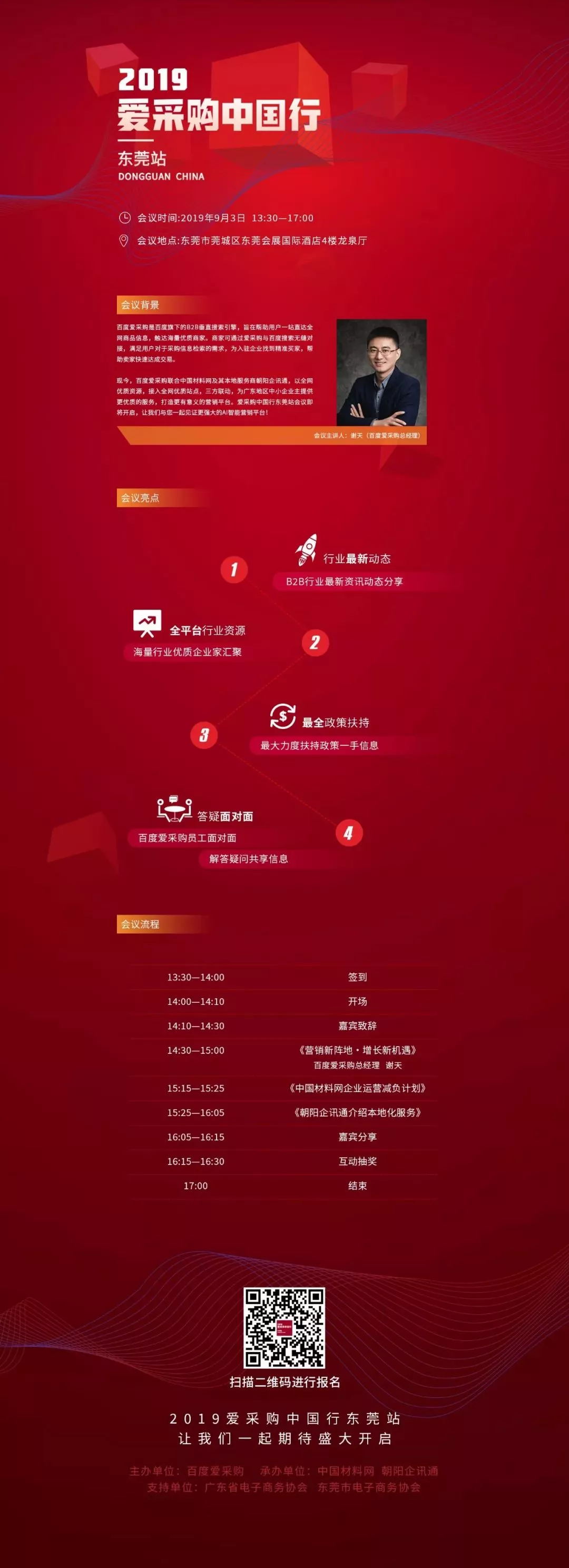 9月3日,百度愛(ài)采購(gòu)將聯(lián)合朝陽(yáng)企訊通、中國(guó)材料網(wǎng),在東莞會(huì)展國(guó)際酒店舉辦行業(yè)峰會(huì),屆時(shí)將由百度愛(ài)采購(gòu)總經(jīng)理謝天給大家分享新的機(jī)遇,還有幸邀請(qǐng)廣東商會(huì)和東莞商會(huì)、中國(guó)材料網(wǎng)和朝陽(yáng)企訊通的主要負(fù)責(zé)人到場(chǎng)。
